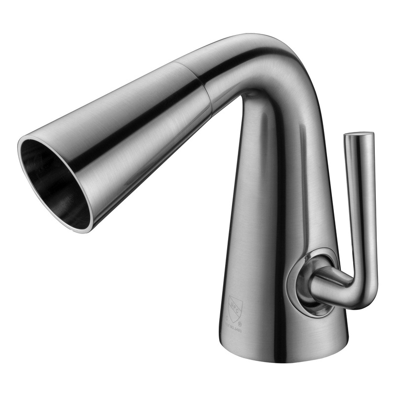 This unique single hole cone shaped waterfall faucet by ALFI brand offers traditional installation with a sophisticated modern appearance. Available in Polished or Brushed finish and made to match or stand out from other bathroom fixtures. Effortlessly adding a touch of contemporary flair to any style decor.