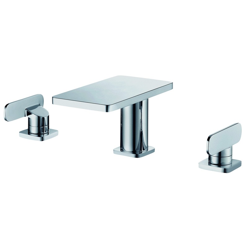 This one of a kind shelf like faucet by ALFI Brand adds a wow factor to your modern bathroom design. With a flat rectangular spout and matching single lever handles, widespread installation and unique waterfall water flow, you are sure to add an exceptiona