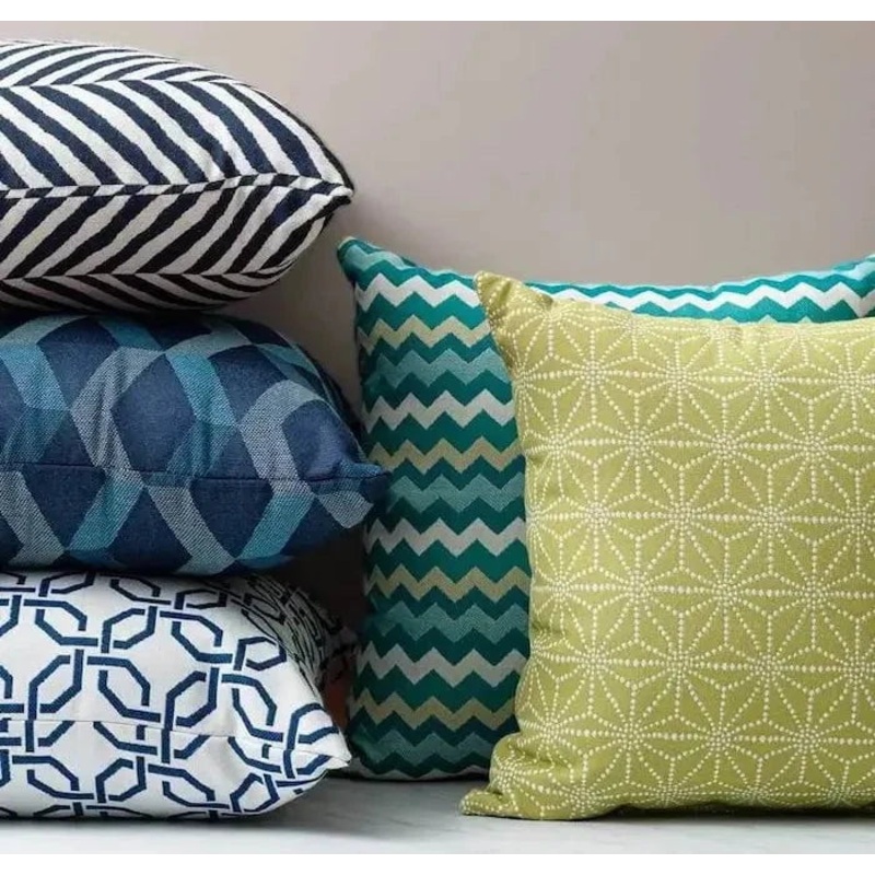 The perfect accent to your indoor and outdoor spaces. The colored geometrics add strong lines and colors to any decor. These Sunbrella throw pillows, are made with a durable fabric that's water-repellant, designed to resist mildew, fading, chlorine and sta
