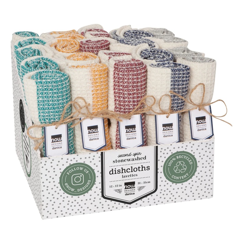 This set of 25 Classic Stonewashed Dishcloths combines practicality with eco-friendly materials, crafted from 85% recycled cotton and 15% recycled polyester. Each 12x12 inch cloth is soft yet durable, perfect for everyday kitchen use. Presented in a compac