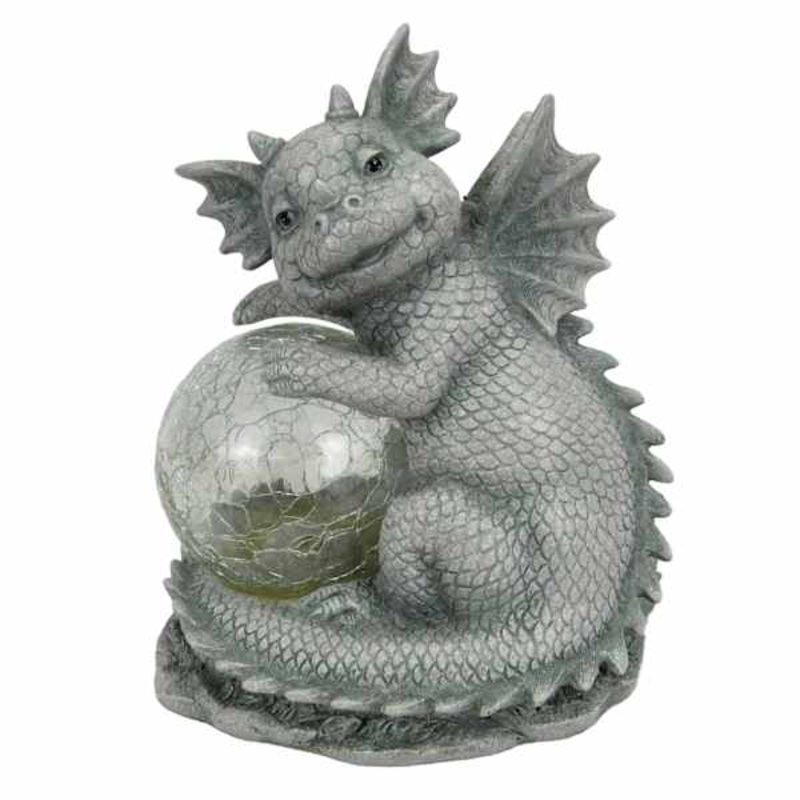 Round out your indoor or outdoor decor’s visual appeal with our 9in. Solar Ball Dragon Figurine, crafted of resin and showcasing a sweet dragon and solar orb motif. This piece’s architectural details add a pop of pattern to your look, while the stone-like grey patina blends effortlessly into any color palette. Set this statue inside or out and it’ll round out your space with wonderful coordinating decor.Dimensions7.5″ L x5.4″ W x8.8″ H Weight2.5 lbs.ColorgreyMaterialResinDepartmentPatioLocationOutdoor DcorUPC197154346518Location ID42-GL11A