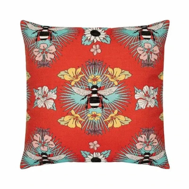 The Elaine Smith Tropical Bee Red Square Pillow brings a lively touch to any space with its vibrant red hue and charming bee motif, adding a playful tropical flair. Measuring 22" square, this pillow is crafted from durable, outdoor-safe fabric, making it a