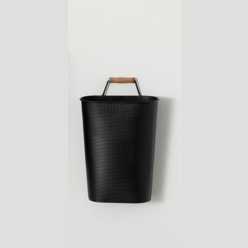 Embossed Wall Planter- SmallThis stylish metal wall planters feature a sleek, black finish and an embossed mini checkered pattern that adds visual interest.The sturdy wood handles make them easy to move around, while the no-hole design means you can use th
