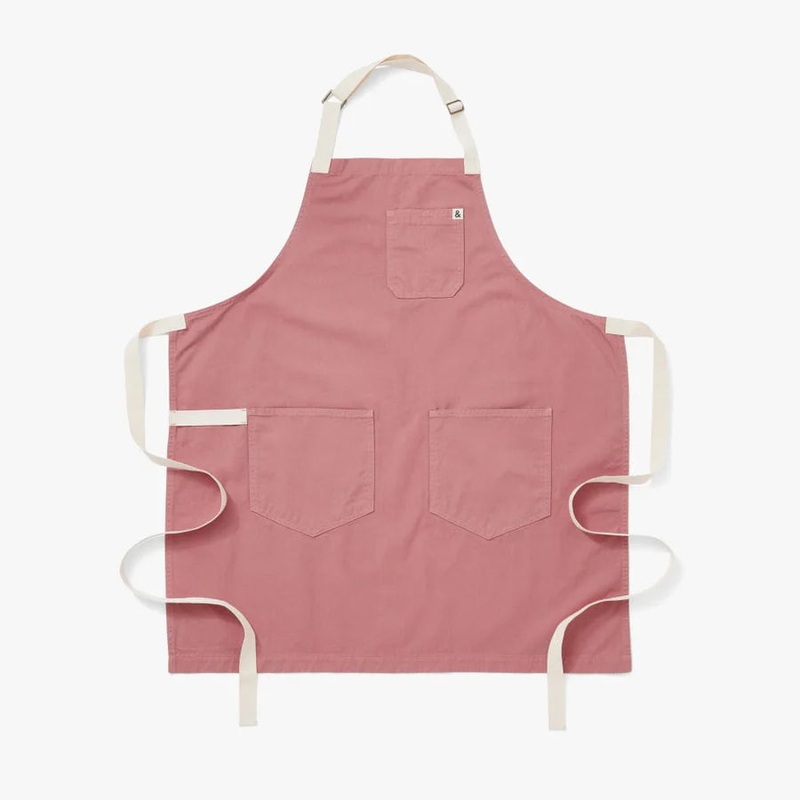 This rosy-hued apron, inspired by the delicate blush of rhubarb stalks, adds a refined touch to your kitchen attire. Crafted from durable 8oz cotton twill, it offers comfort and resilience for all your cooking adventures. With generous dimensions and adjus