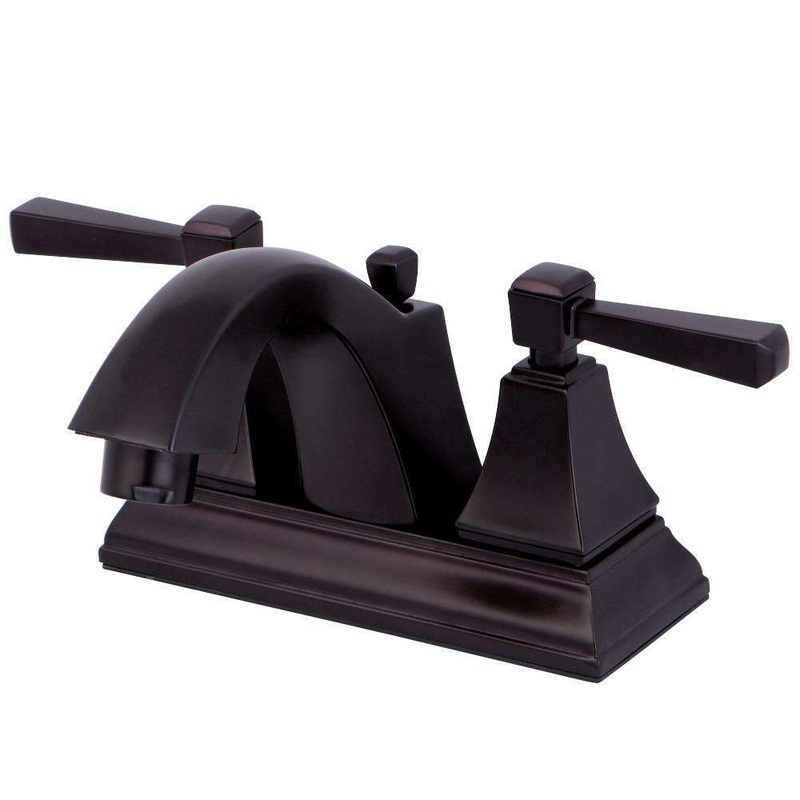This faucet’s modern features create a bold and edgy design in your bathroom. Centerset bathroom faucets are ideal for smaller bathrooms and feature an easy 3-hole installation. The Monarch 4-Inch Centerset Bathroom Faucet with Retail Pop-Up and its featured sturdy brass construction and premium oil rubbed bronze finish are guaranteed to glamorize your home’s modern ensemble for years to come. A matching finish drain is also included.