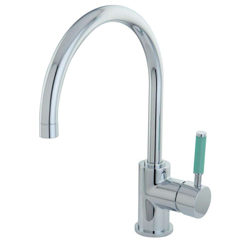 This faucet tastefully interweaves top-notch ergonomic design and the sheen of contemporary simplicity with its green silicone rubber coated handles and cylindrical facets. Kingston Brass vessel sink faucets perfectly complement the exquisite artistry of vessel sinks. Designed to handle the extra clearance needed for pairing with a vessel sink, this faucet boasts 7-1/8 inch of spout clearance. The Green Eden Single-Handle Vessel Sink Faucet and its featured sturdy brass construction and premium polished chrome finish are guaranteed to glamorize your home’s modern ensemble for years to come.