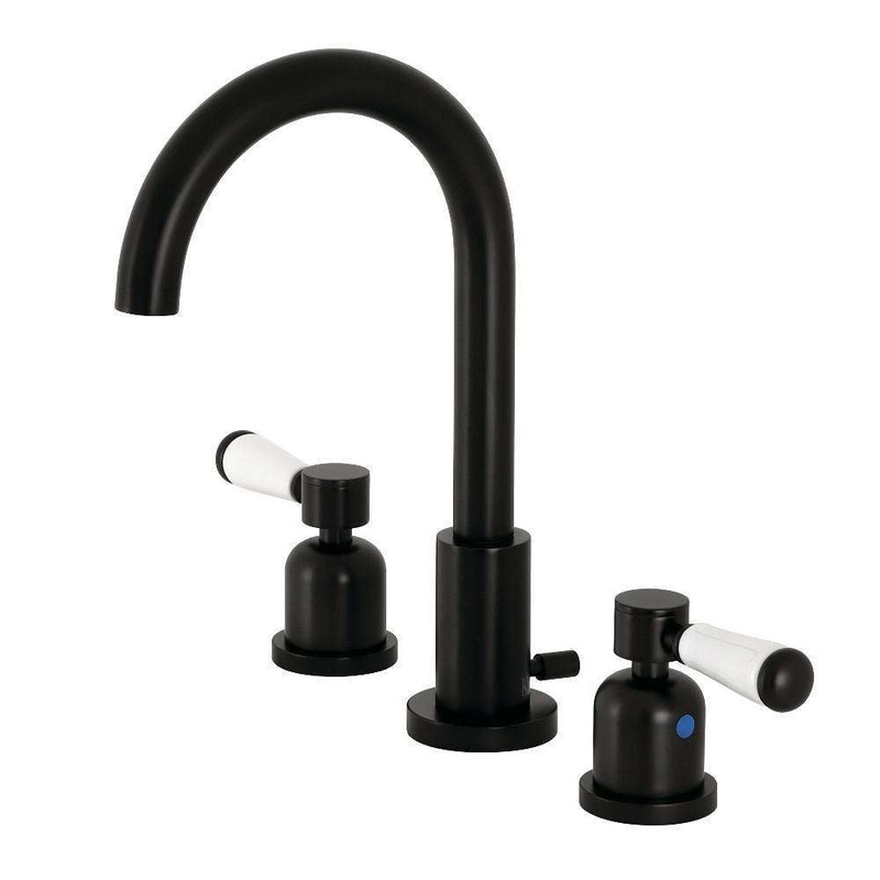 Crafted to bring aesthetic beauty alongside exceptional performance, the feature of porcelain lever handles and rounded architecture solidifies pristine refinement in this faucet. Ideal for more spacious bathrooms, widespread faucets are more spread apart