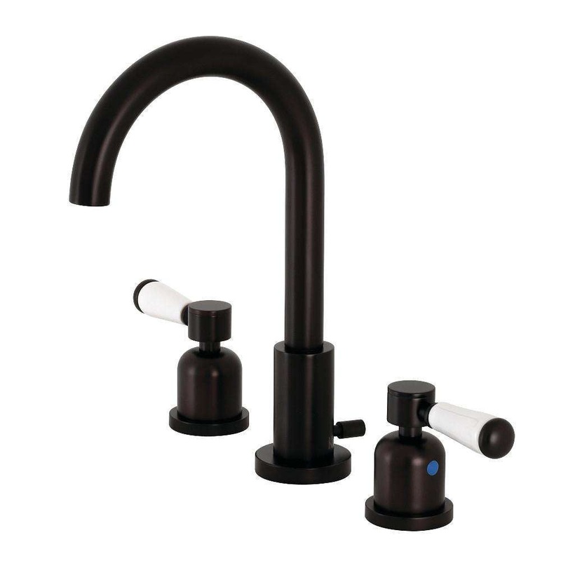 Crafted to bring aesthetic beauty alongside exceptional performance, the feature of porcelain lever handles and rounded architecture solidifies pristine refinement in this faucet. Ideal for more spacious bathrooms, widespread faucets are more spread apart