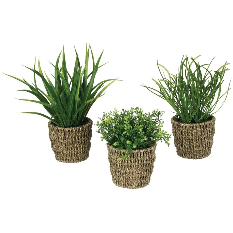 Foliage w/Basket Potted PlantPerfectly potted for display together or alone, this group of grasses are a better-than-real alternative perfect for every home. Just place in a sunny windowsill or sunporch - no upkeep necessary!