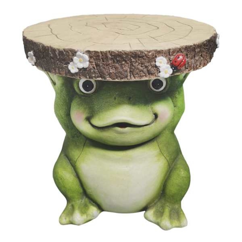 Highlight your patio decor and gardening with our festively fun 12in. Frog Plant Stand. More than just a spot to set a beautiful plant, this whimsical stand/stool offers a nature appearance with its oversized realistic profile and decorative surface. Desig