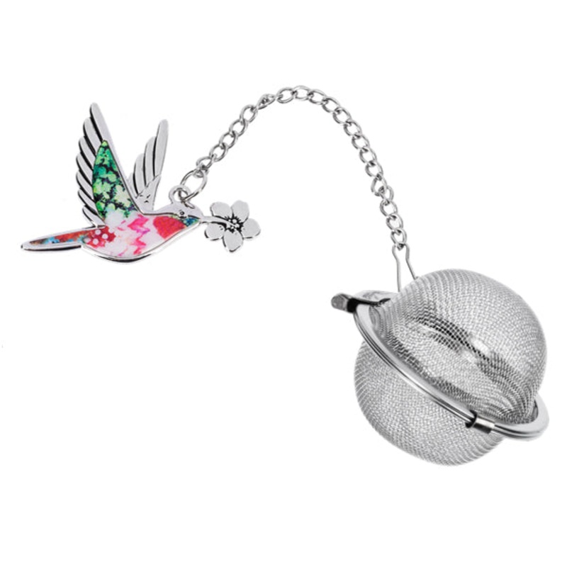 This Ganz Tea Infuser features a hummingbirdcharm at the end.