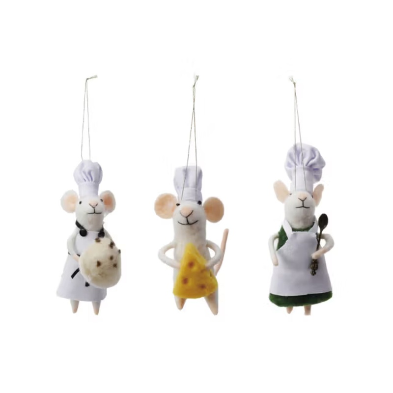 Add a dash of fun to your holiday decor with this playful Handmade Wool Felt Chef Mouse Ornament! Dressed in a tiny chefs hat and apron, this charming mouse brings a sprinkle of culinary whimsy to your tree. Perfect for food lovers and those who enjoy a co