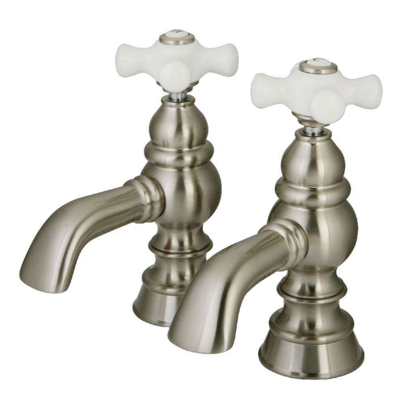 Return to the antique designs of the early 20th Century with this faucet, offering detailings of refined splendor and ornate design to your home. Basin tap faucets are a traditional design that allows users to mix water to their desired temperature within the sink basin. With cross handles for ease of use, the perfect temperature can be acquired with the separate cold and hot water taps. The Vintage Basin Faucet Set and its featured sturdy brass construction and premium brushed nickel finish are guaranteed to glamorize your home’s traditional ensemble for years to come. Let this faucet bring about an air of traditional allure to your interior home design.