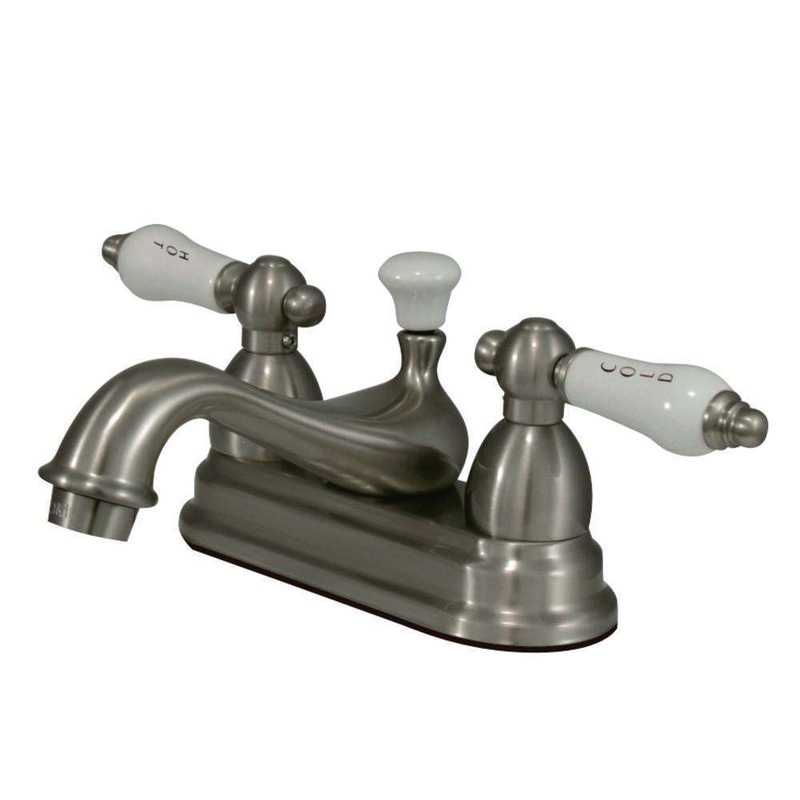 Return to the antique designs of the early 20th Century with this faucet, offering detailings of refined splendor and ornate design to your home. Centerset bathroom faucets are ideal for smaller bathrooms and feature an easy 3-hole installation. The Vintage 4-Inch Centerset Bathroom Faucet and its featured sturdy brass construction and premium brushed nickel finish are guaranteed to glamorize your home’s traditional ensemble for years to come. Let this faucet bring about an air of traditional allure to your interior home design. A matching finish drain is also included.