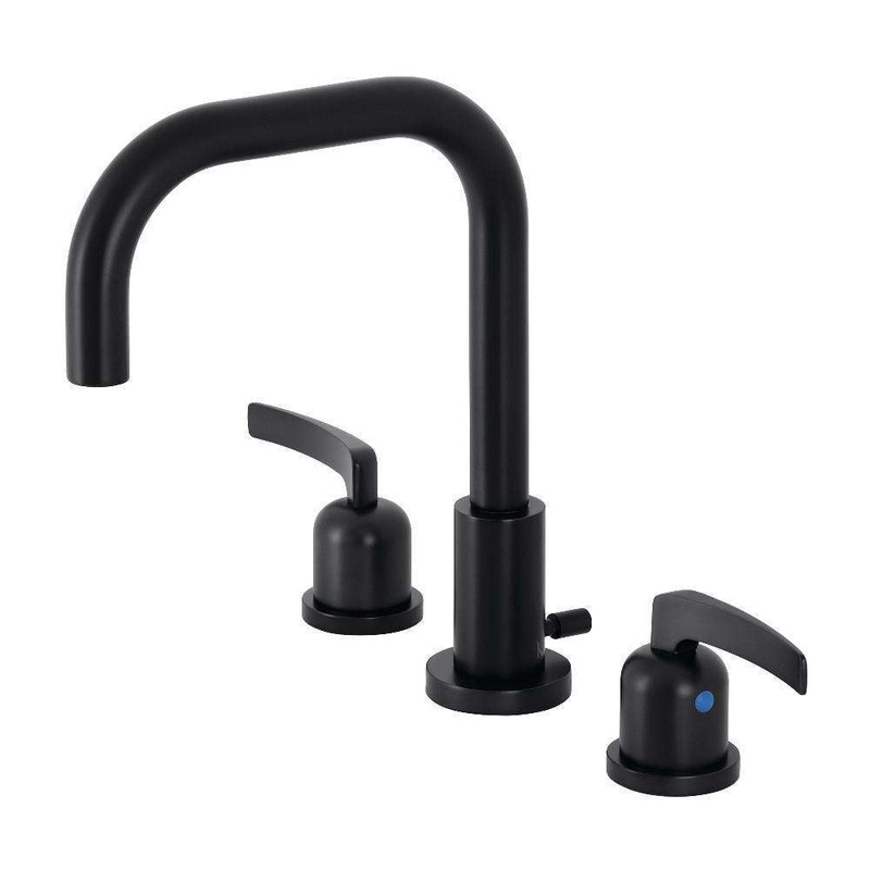 The innovative, sleek design of this faucet will enhance contemporary decor. Ideal for more spacious bathrooms, widespread faucets are more spread apart and feature a 3-hole installation. The Centurion widespread bathroom faucet with brass pop-up and its featured sturdy brass construction and premium matte black finish are guaranteed to glamorize your home’s modern ensemble for years to come. Upgrade your contemporary home into a place of elite sophistication with this faucet. A matching finish drain is also included.