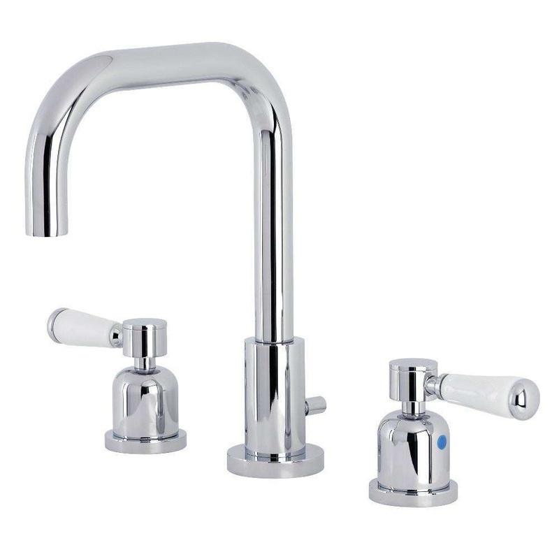 Crafted to bring aesthetic beauty alongside exceptional performance, the feature of porcelain lever handles and rounded architecture solidifies pristine refinement in this faucet. Ideal for more spacious bathrooms, widespread faucets are more spread apart