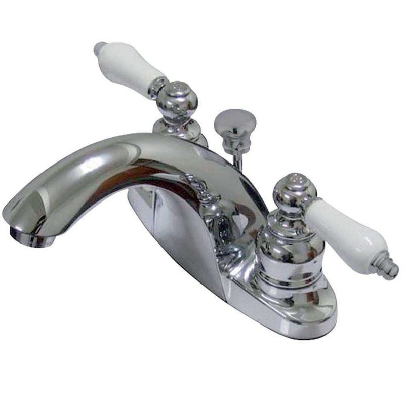Embody the extravagance of 18th century Europe by adorning your house with the traditional elegance offered by this faucet. Centerset bathroom faucets are ideal for smaller bathrooms and feature an easy 3-hole installation. The English Country 4-inch centerset bathroom faucet and its featured sturdy brass construction and premium polished chrome finish are guaranteed to glamorize your home’s traditional ensemble for years to come. A matching finish drain is also included.
