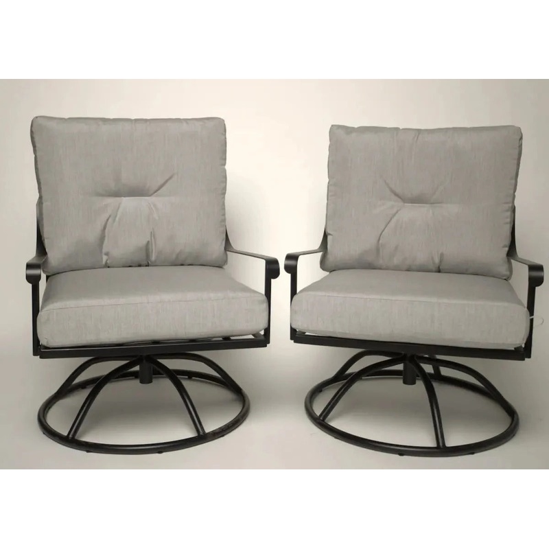 Local Special, Floor model, Set of 2, Meadowcraft, Valentina, Swivel Rockers, Charcoal Finish, Canvas Granite Fabric, Grade A