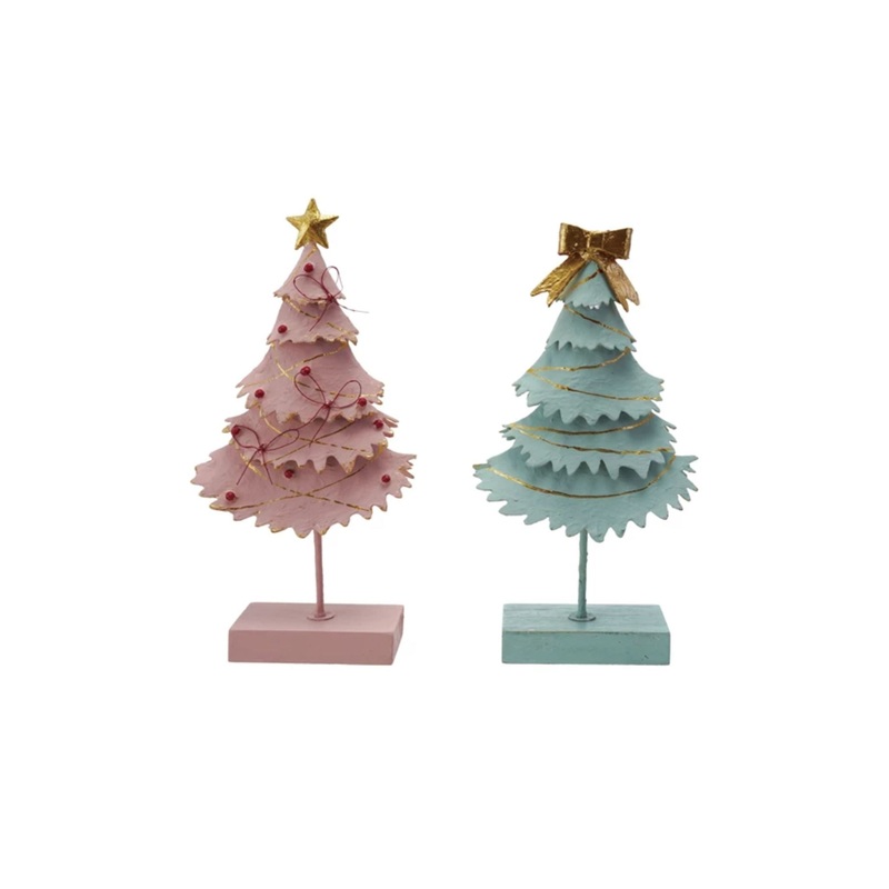 Add a festive sparkle to your holiday decor with this playful metal Christmas tree! Standing 13 inches tall and adorned with a cheerful star and bow, its vibrant multi-color design brings joy and whimsy to any space. Perfect for tabletops or mantels, this
