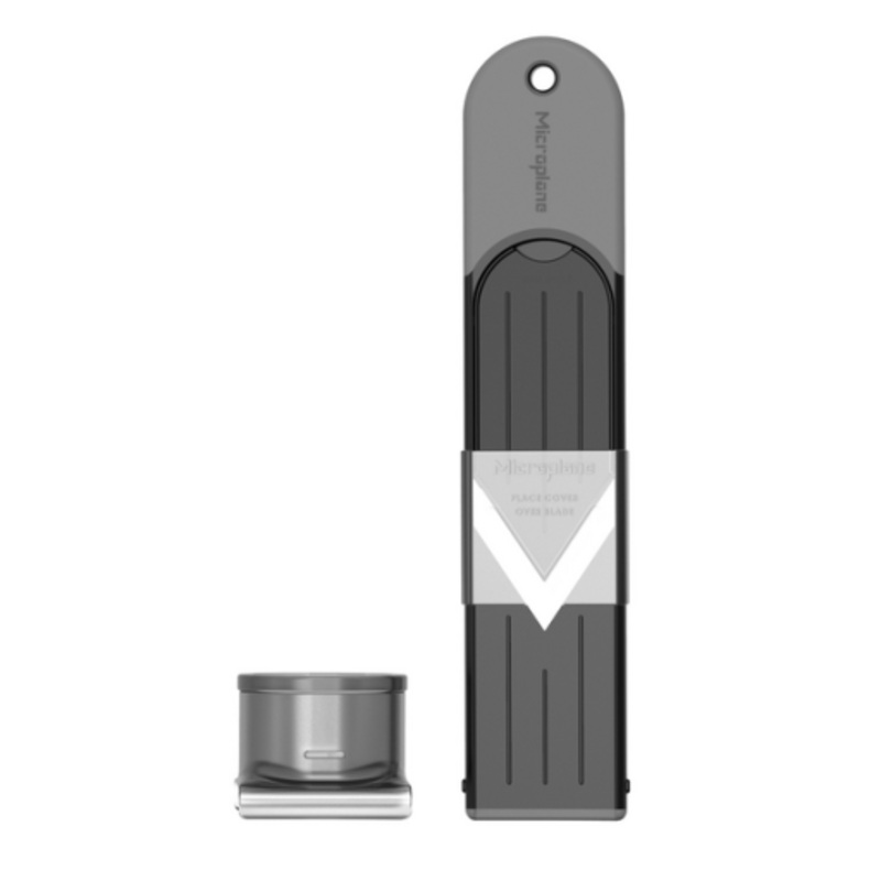 Microplane’s Mini Mandoline is the ideal kitchen tool for slicing delicate foods such as mushrooms, strawberries, and eggs. Expertly crafted from premium stainless steel, our Mini Mandoline guarantees consistent and precise cuts every time. With three adjustable thickness settings, you can always achieve the perfect slice for your dish. The slider attachment safeguards your fingers, ensuring a safe and effortless slicing experience, even with the most fragile foods. Its compact and lightweight design makes it a convenient addition to small kitchens or for cooking on the go. Additional features include a reusable blade cover for secure storage, a soft-touch handle and non-slip foot for stability, and a reversible deck that can effortlessly switch from thin to medium slices or be removed entirely for extra thick slices.
