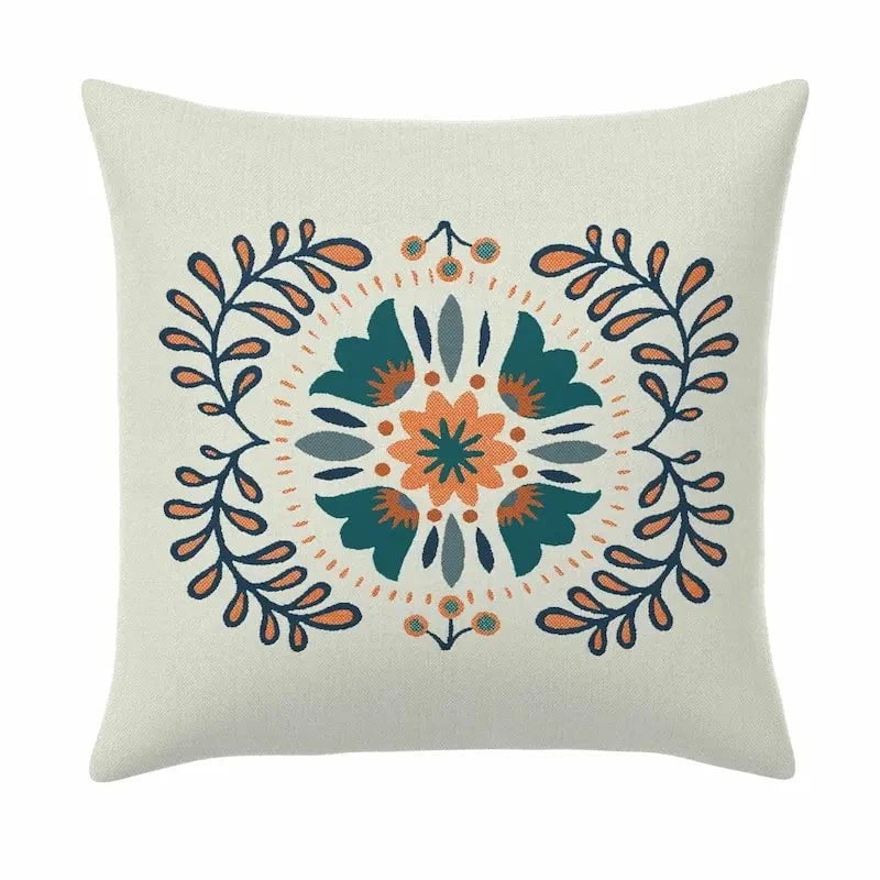 Effortlessly maintainable, these pillows are bleach safe and machine washable, allowing them to withstand the rigors of everyday use while retaining their pristine appearance. Elevate your living space with the timeless charm of the Otomia Medallion Resort Square Throw Pillow from the Earnest Collection.