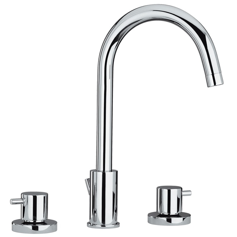 Whitehaus Collection offers smooth lines and functionality with Luxe Bath. The luxurious design of the Luxe widespread lavatory faucet with tall gooseneck swivel spout, short lever handles and pop-up waste in polished chrome adds character to any decor.